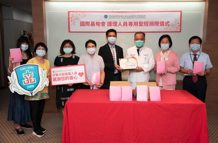 這段防疫艱困期間,醫護人員是非常辛勞敬業!我們表達致敬與祝福!獻上聖經別具意義!神親自引領為我們開路,能「一箭三鵰」同時聯繫三個大型教學醫院進入贈經。北醫君蔚天使團團長張瓊枝女士扮演如天使般關鍵角色,我們衷心感謝!