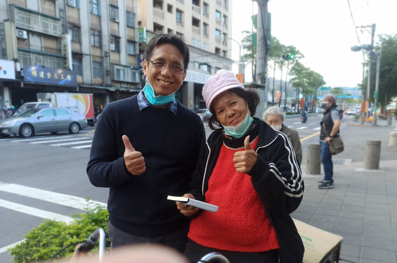 今早在中和高中贈送聖經,一位七十多歲的阿姨經過,我把空紙箱給了她,也開啟一段美好對話。